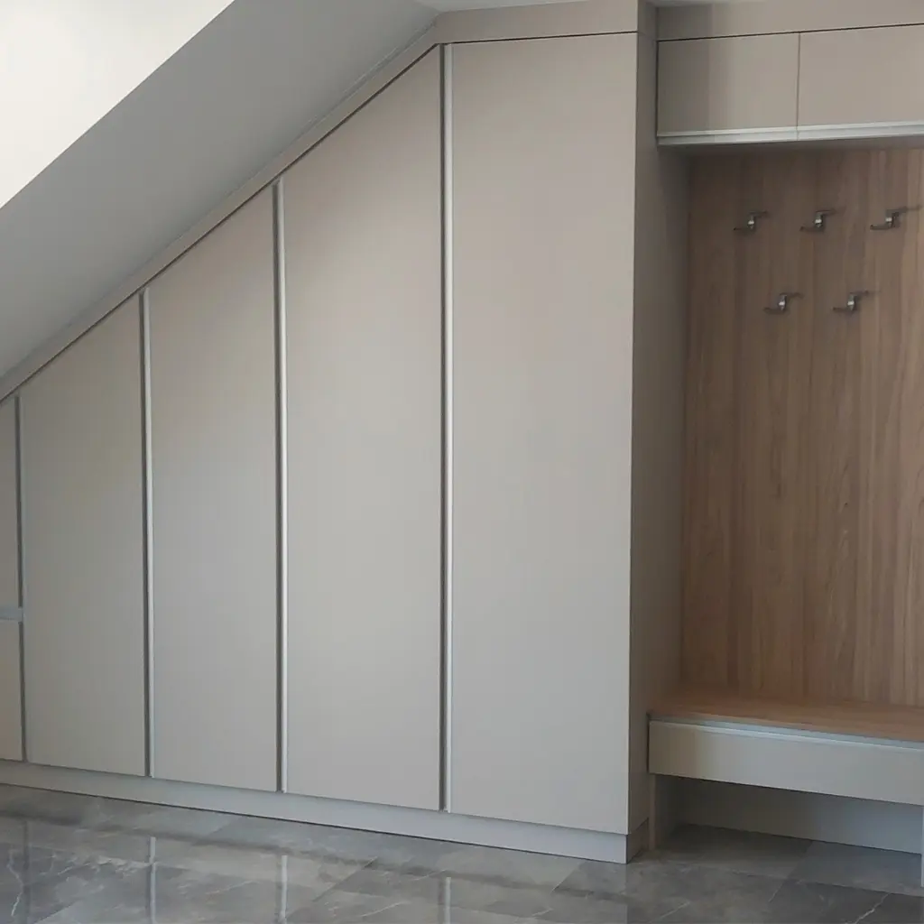 Egy beépített szekrény az oldalfalak között, a padlótól a plafonig terjedve képes kihasználni a rendelkezésre álló teret. Nincs többé kihasználatlan sarok vagy rés!